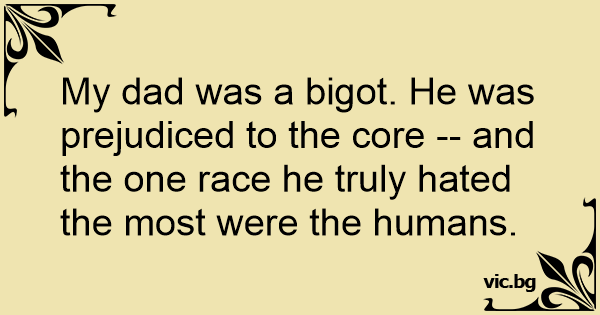 My dad was a bigot. He was prejudiced to the core -- and the one race he truly hated the most were the humans.