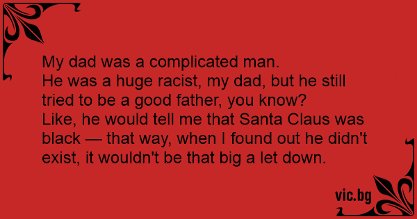 Like, he would tell me that Santa Claus was black — that way, when I found out he didn't exist, it wouldn't be that big a let down.