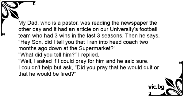 My Dad, who is a pastor, was reading the newspaper the other day and it had an article on our University’s football team who had 3 wins in the last 3 seasons. Then he says,