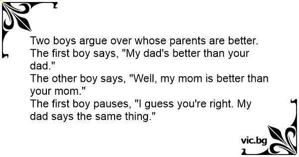 The first boy pauses, "I guess you're right. My dad says the same thing."