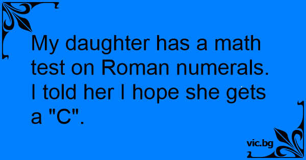 My daughter has a math test on Roman numerals.