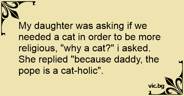 My daughter was asking if we needed a cat in order to be more religious, "why a cat?" i asked.