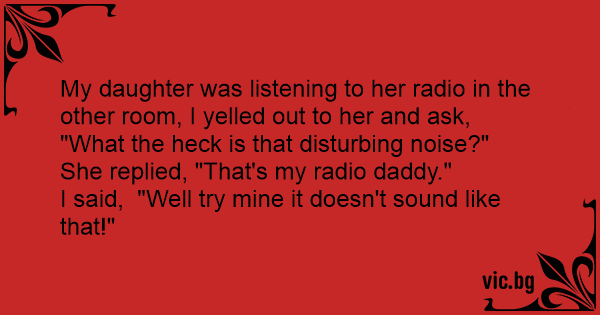 My daughter was listening to her radio in the other room, I yelled out to her and ask, "What the heck is that disturbing noise?"