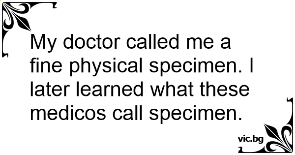My doctor called me a fine physical specimen. I later learned what these medicos call specimen.