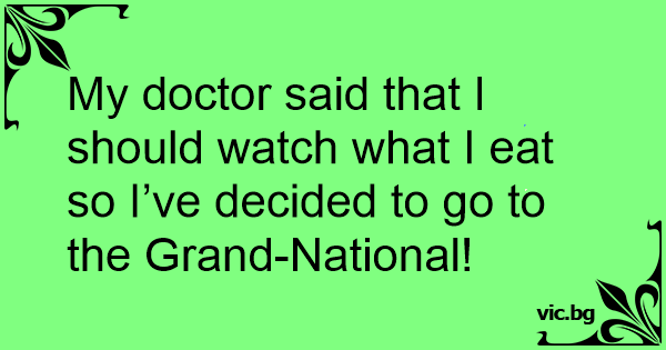 My doctor said that I should watch what I eat so I’ve decided to go to the Grand-National!