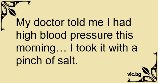 My doctor told me I had high blood pressure this morning… I took it with a pinch of salt.