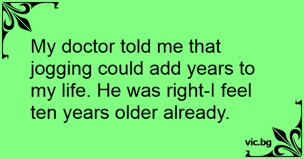 My doctor told me that jogging could add years to my life. He was right-I feel ten years older already.