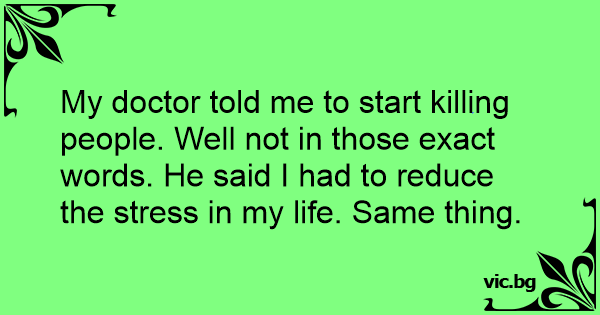 My doctor told me to start killing people. Well not in those exact words. He said I had to reduce the stress in my life. Same thing.