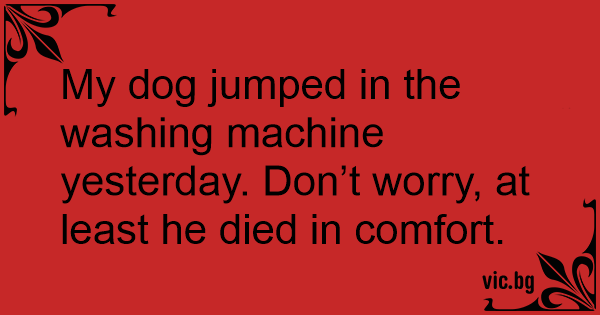 My dog jumped in the washing machine yesterday. Don’t worry, at least he died in comfort.