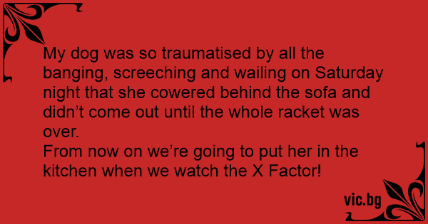 My dog was so traumatised by all the ваnging, screeching and wailing on Saturday night that she cowered behind the sofa and didn’t come out until the whole racket was over.