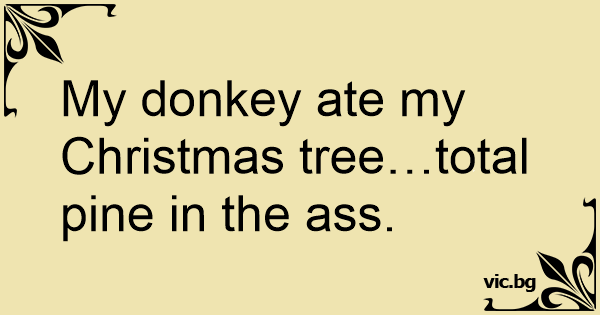 My donkey ate my Christmas tree…total pine in the аss.