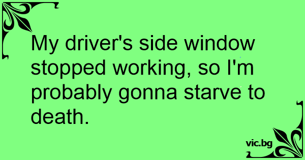 My driver's side window stopped working, so I'm probably gonna starve to death.