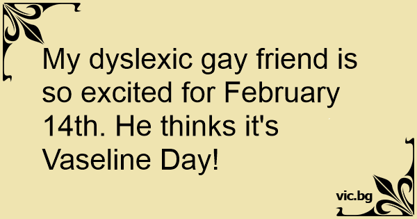 My dyslexic gаy friend is so excited for February 14th. He thinks it's Vaseline Day!