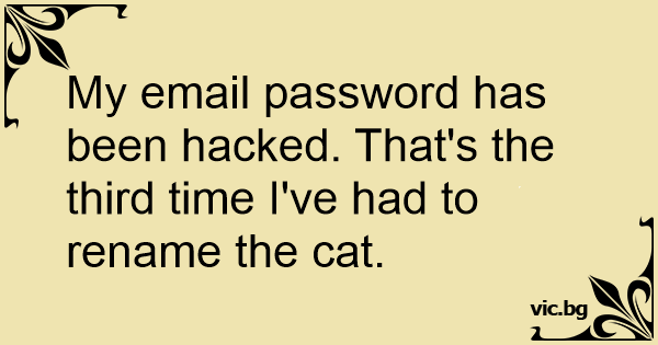 My email password has been hacked. That's the third time I've had to rename the cat.