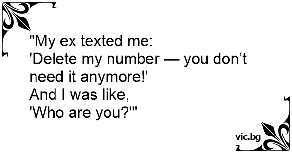 „Бившият ми ми писа: „Изтрий номера ми — вече не ти е нужен!“ А аз му отговорих: „А ти си...?!“
