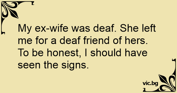 My ex-wife was deaf. She left me for a deaf friend of hers.