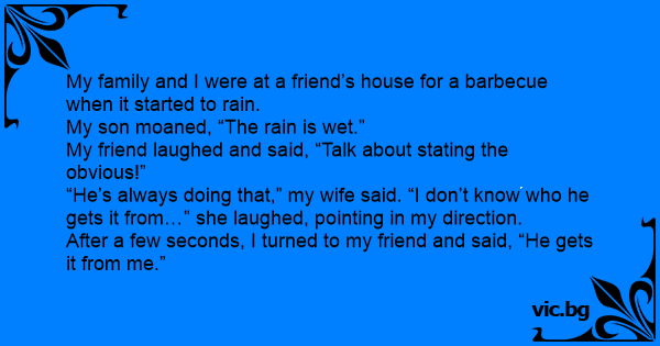 My family and I were at a friend’s house for a barbecue when it started to rain.