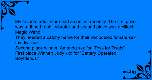 My favorite adult store had a contest recently. The first prize was a ribbed rabbit viвrатоr and second place was a Hitachi Magic Wand.