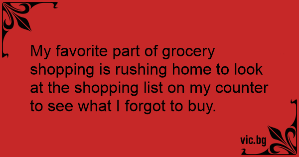 My favorite part of grocery shopping is rushing home to look at the shopping list on my counter to see what I forgot to buy.