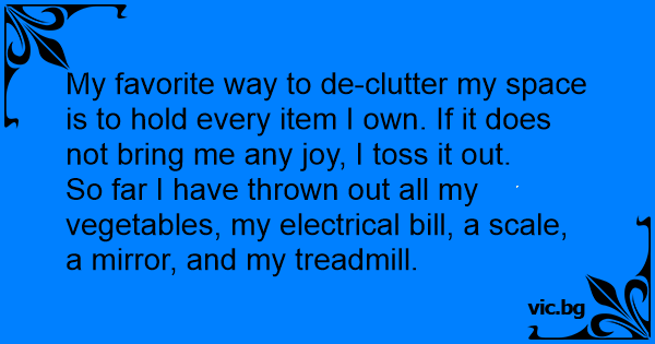 My favorite way to de-clutter my space is to hold every item I own. If it does not bring me any joy, I toss it out.