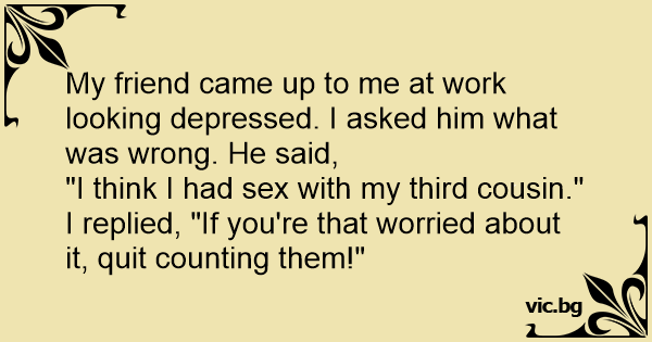 "I think I had sеx with my third cousin." I replied, "If you're that worried about it, quit counting them!"