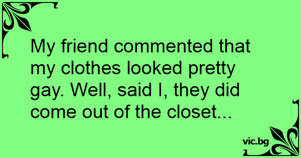 My friend commented that my clothes looked pretty gаy. Well, said I, they did come out of the closet...