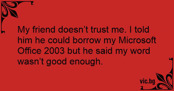 My friend doesn’t trust me. I told him he could borrow my Microsoft Office 2003 but he said my word wasn’t good enough.