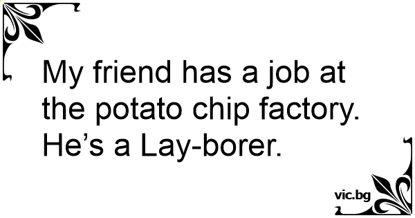 My friend has a job at the potato chip factory. He’s a Lay-borer.