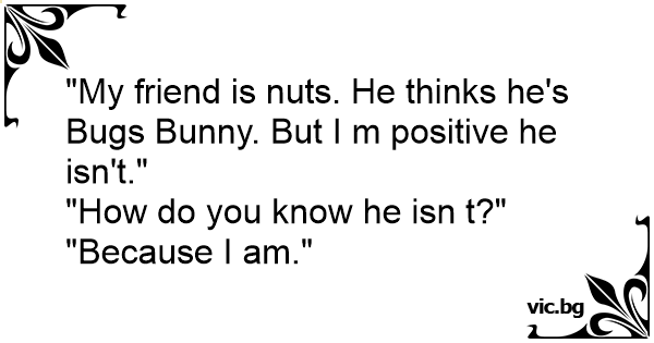 "My friend is nuts. He thinks he's Bugs Bunny. But I m positive he isn't."
