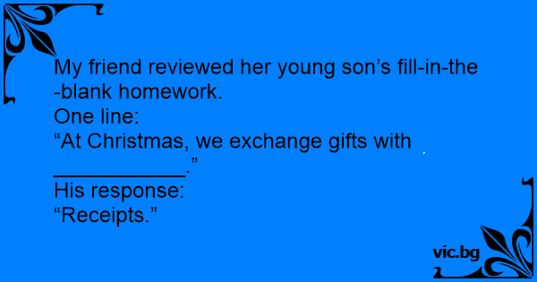 “At Christmas, we exchange gifts with ___________.”