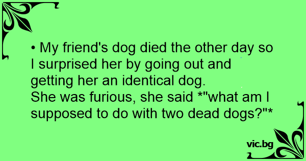 • My friend's dog died the other day so I surprised her by going out and getting her an identical dog.