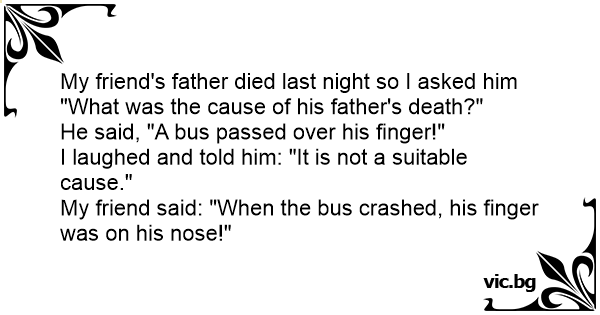 My friend's father died last night so I asked him "What was the cause of his father's death?"