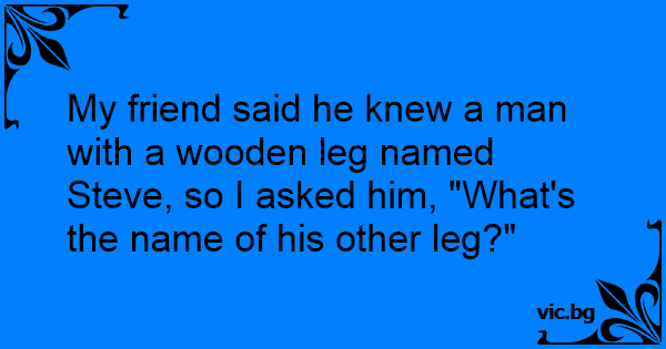 My friend said he knew a man with a wooden leg named Steve, so I asked him, "What's the name of his other leg?"