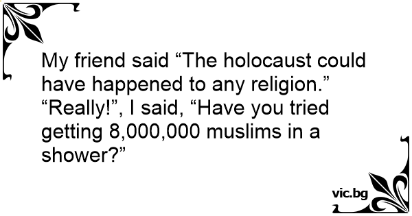 “Really!”, I said, “Have you tried getting 8,000,000 muslims in a shower?”