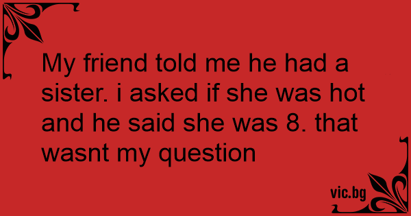 My friend told me he had a sister. i asked if she was hot and he said she was 8. that wasnt my question