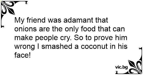 My friend was adamant that onions are the only food that can make people cry. So to prove him wrong I smashed a coconut in his face!