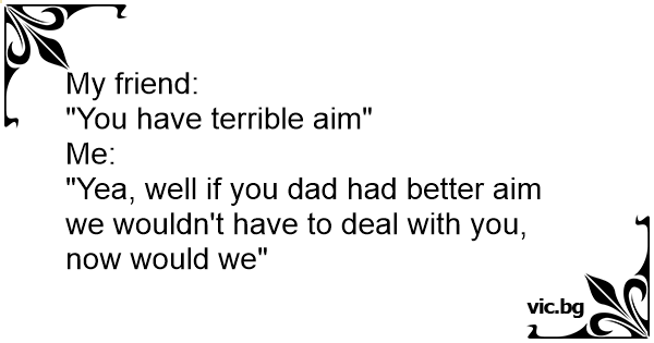 "Yea, well if you dad had better aim we wouldn't have to deal with you, now would we"