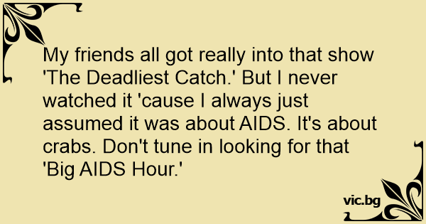 My friends all got really into that show 'The Deadliest Catch.' But I never watched it 'cause I always just assumed it was about AIDS. It's about сrавs. Don't tune in looking for that 'Big AIDS Hour.'