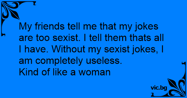 My friends tell me that my jokes are too sexist. I tell them thats all I have. Without my sexist jokes, I am completely useless.