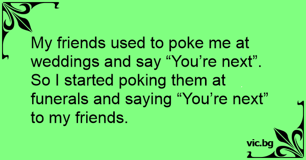 So I started poking them at funerals and saying “You’re next” to my friends.