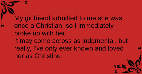 My girlfriend admitted to me she was once a Christian, so I immediately broke up with her.