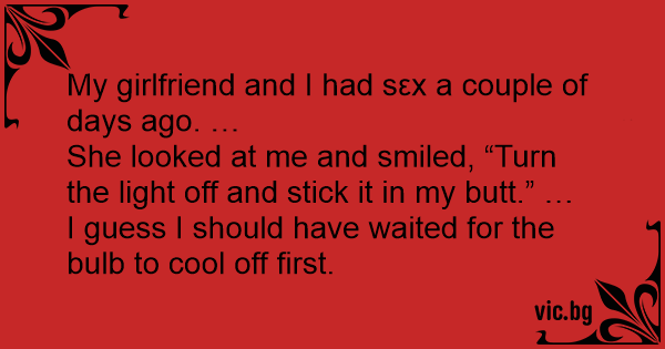 She looked at me and smiled, “Turn the light off and stick it in my вuтт.” …