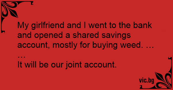 My girlfriend and I went to the bank and opened a shared savings account, mostly for buying wееd. …
