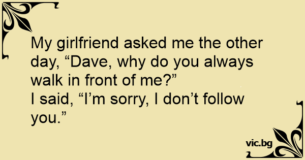 My girlfriend asked me the other day, “Dave, why do you always walk in front of me?”
