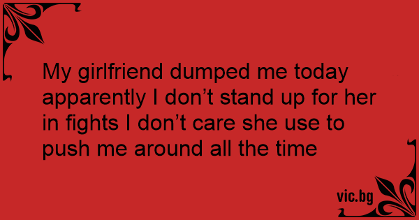 My girlfriend dumped me today apparently I don’t stand up for her in fights I don’t care she use to push me around all the time