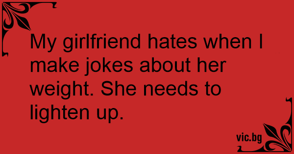 My girlfriend hates when I make jokes about her weight. She needs to lighten up.