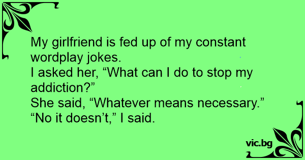 My girlfriend is fed up of my constant wordplay jokes.