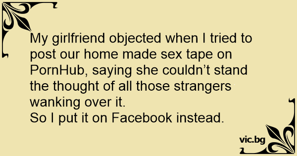 My girlfriend objected when I tried to post our home made sеx tape on РоrnНuв, saying she couldn’t stand the thought of all those strangers wanking over it.
