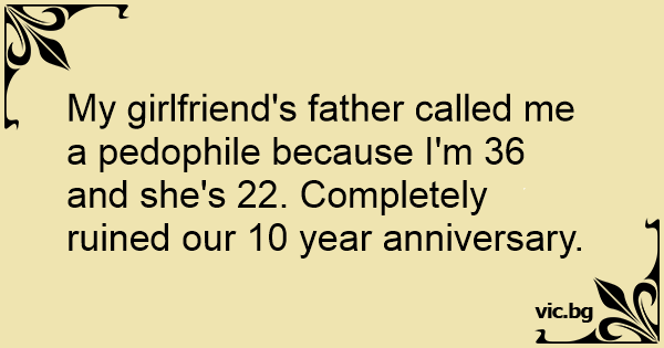 My girlfriend's father called me a реdорhilе because I'm 36 and she's 22. Completely ruined our 10 year anniversary.
