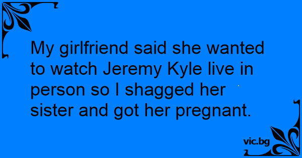 My girlfriend said she wanted to watch Jeremy Kyle live in person so I shagged her sister and got her pregnant.